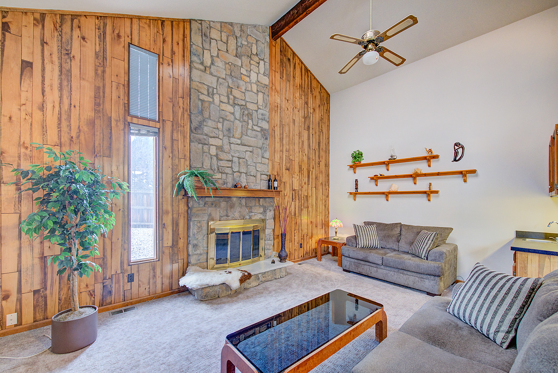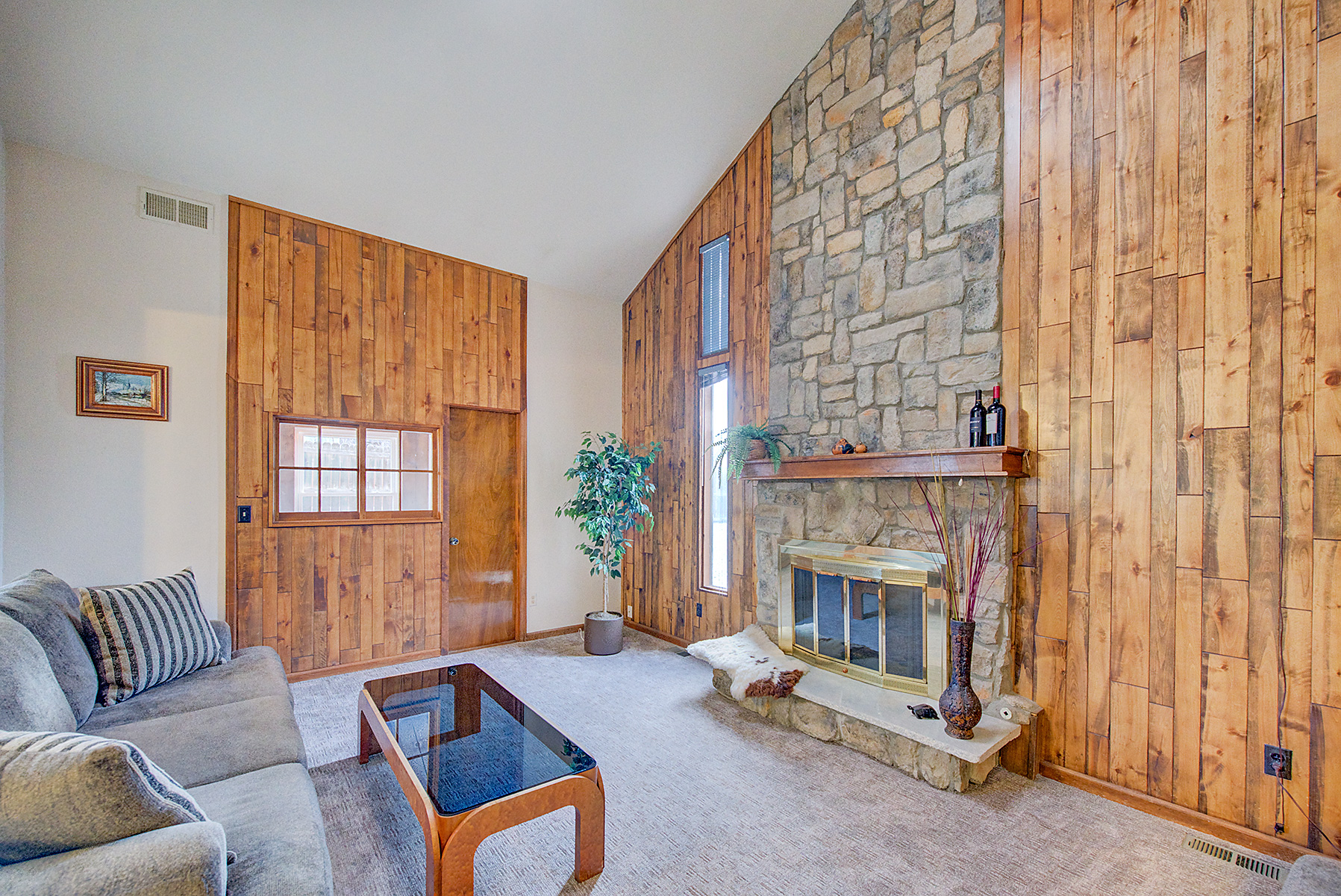 Family room features an inviting gas fireplace for added warmth and ambiance