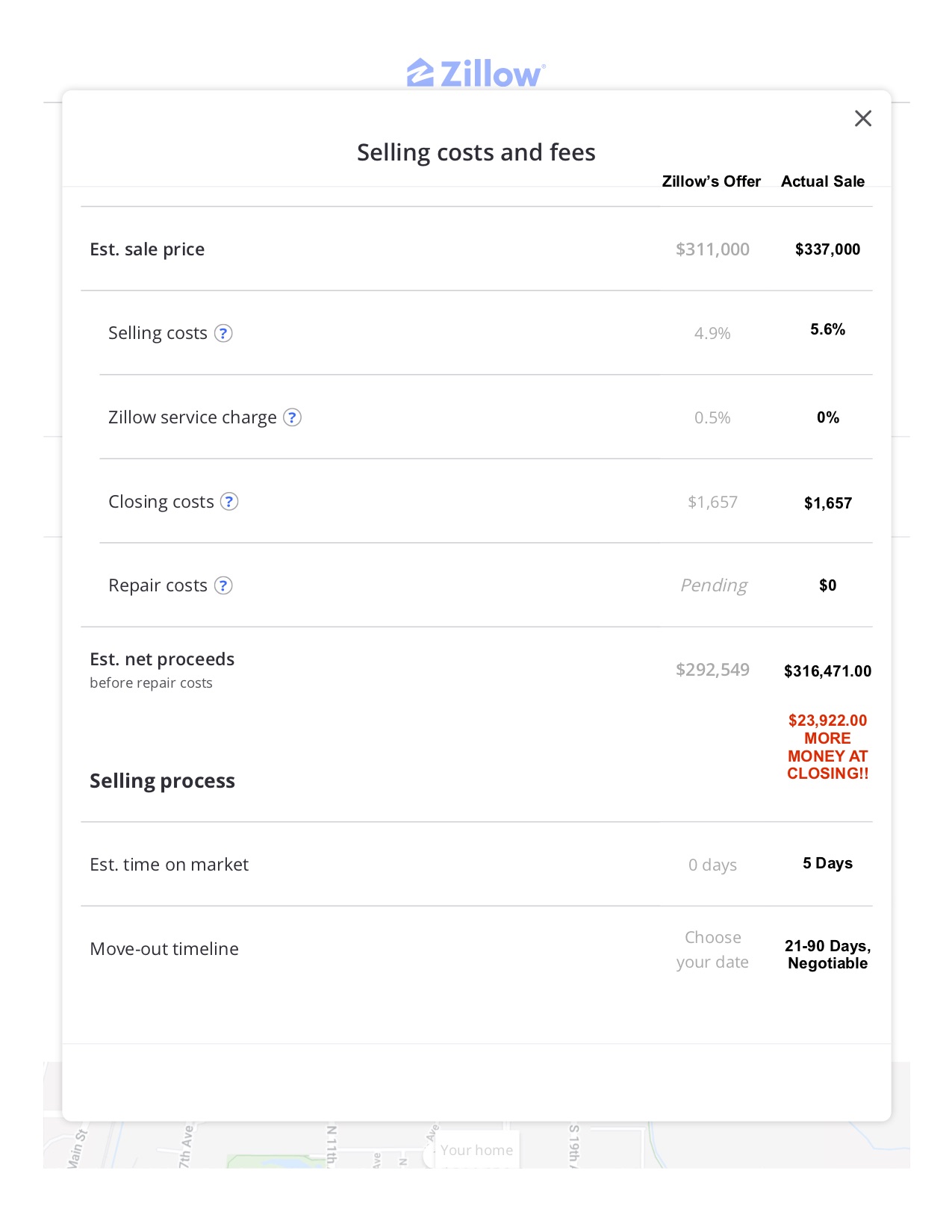 ** View the image in the article. This is a copy of an ACTUAL Zillow Offer received on one of our Seller’s homes. You can see that with TK Homes, they were able to net an additional $23,922 more for their property than if they would have sold to Zillow. Your home is your largest investment—don’t lose money on it when it comes to selling and let someone else enjoy your return on investment.